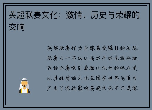 如果你需要,我可以再帮你优化软文,使语言更具营销感和情感渲染,让读者读完就想“身临其境”感受英超文化。