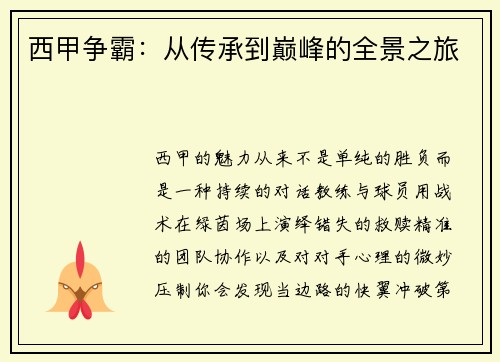 让我们在每一个周末的绿茵场上,继续书写属于西甲的传承与未来;让热爱成为驱动你前行的力量,在这场欧洲顶级联赛的争霸中,找到属于自己的位置与声量。若你愿意与我们同行,将普通的观赛变成深度的学习,将热情转化为持续的行动,西甲争霸的旅程将因你而更加完整。