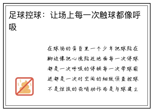 足球控球:让场上每一次触球都像呼吸