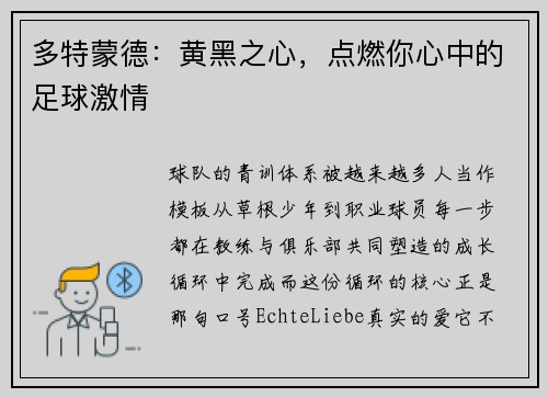 多特蒙德:黄黑之心,点燃你心中的足球激情